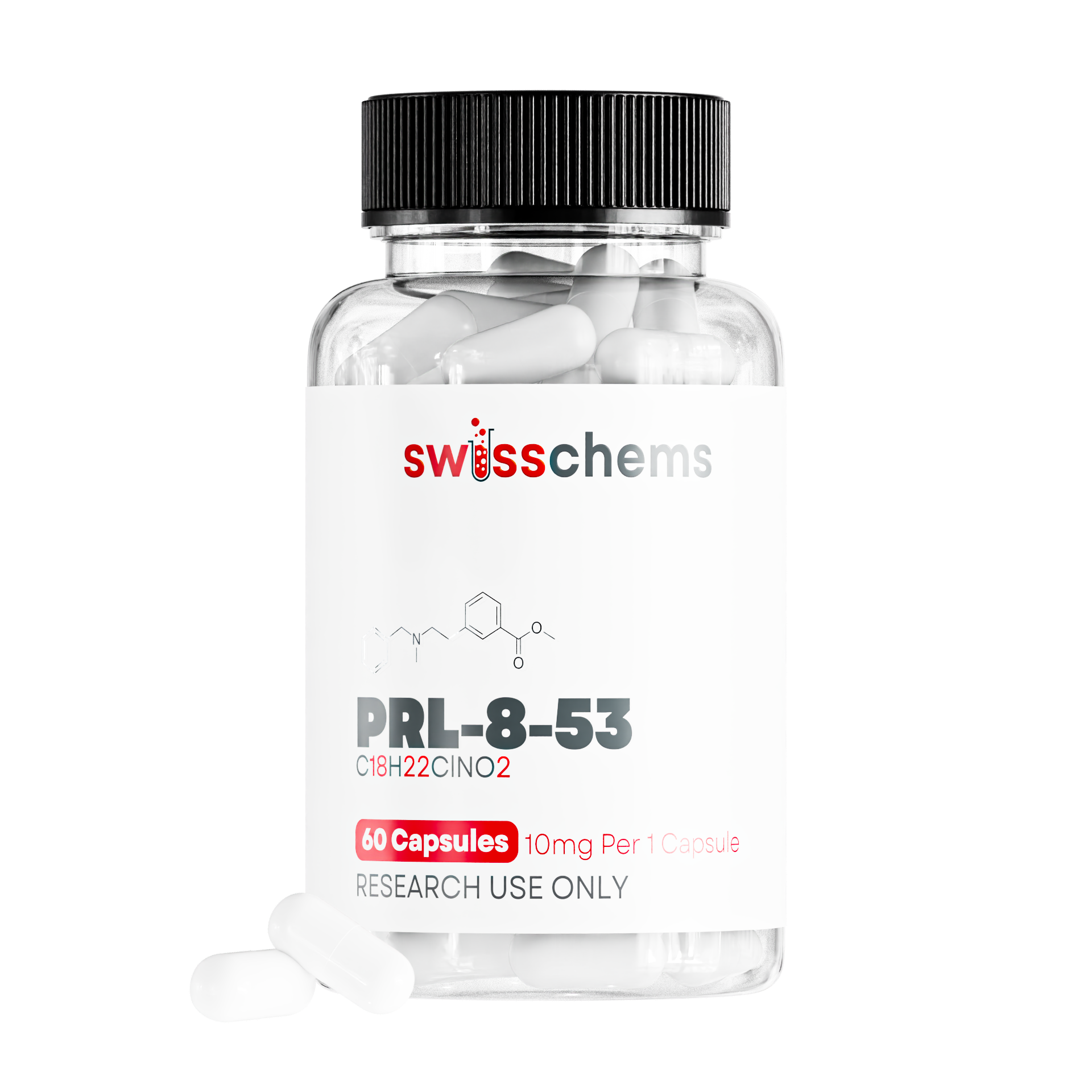 PRL-8-53 (Methyl 3-(2-(benzyl(methyl)amino)ethyl)benzoate) เป็นอนุพันธ์กรดเบนโซอิกสังเคราะห์ที่เป็นที่รู้จักจากการมีปฏิสัมพันธ์กับระบบโคลิเนอร์จิกและโดปามิเนอร์จิก มีความสามารถในการจับกับตัวรับสูงและได้รับการศึกษาเกี่ยวกับอิทธิพลที่อาจมีต่อเส้นทางการส่งสัญญาณทางเคมีประสาท